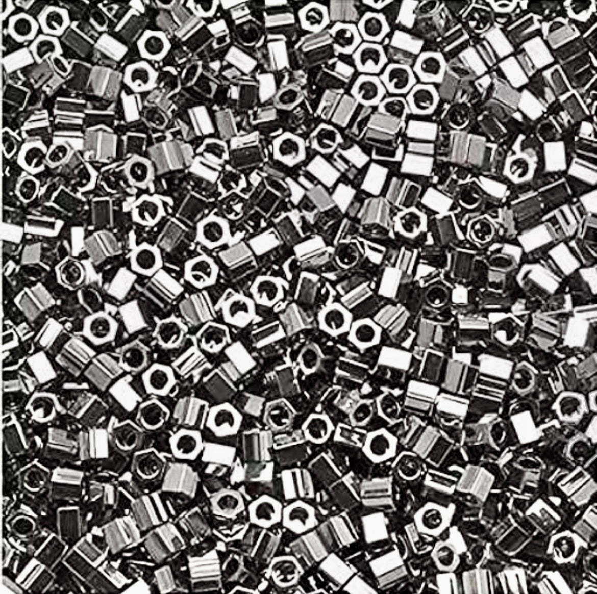 5 gram package of size 11 HEX Cut Miyuki Delica beads in metallic steel. Approximately 1000 beads.